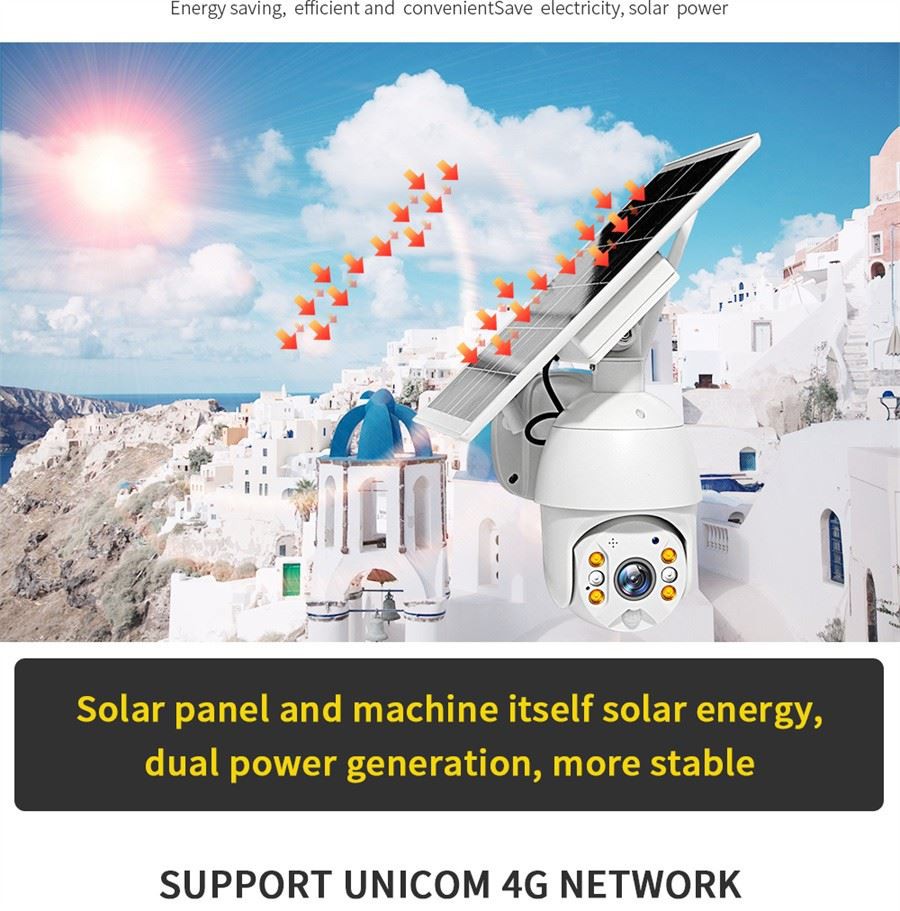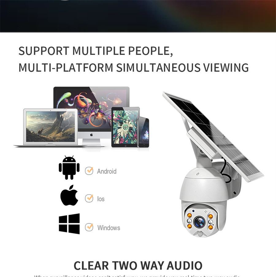 3. 2-veis lyd og nøyaktig PIR bevegelsesdeteksjon ---4g utendørs vanntett solkamera innebygd spyd og mikrofon lar deg eksternt snakke med folk som er i overvåkingsområdet. 4g utendørs vanntett solkamera vedtar svært følsom digital PIR bevegelsessensor og radar detektor, sende varsler til telefonen etter oppdaget folk bevegelse. med nøyaktig pikselanalyseteknologi, noe som reduserer falske alarmer forårsaket av regn og insekter i størst grad.